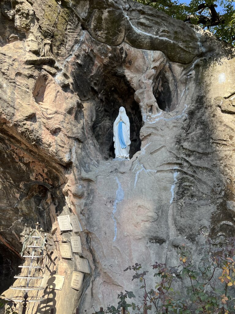 一緒に参加していた仲間たちとともに、ルルドの洞窟の前で光の柱の祈りを捧げました。